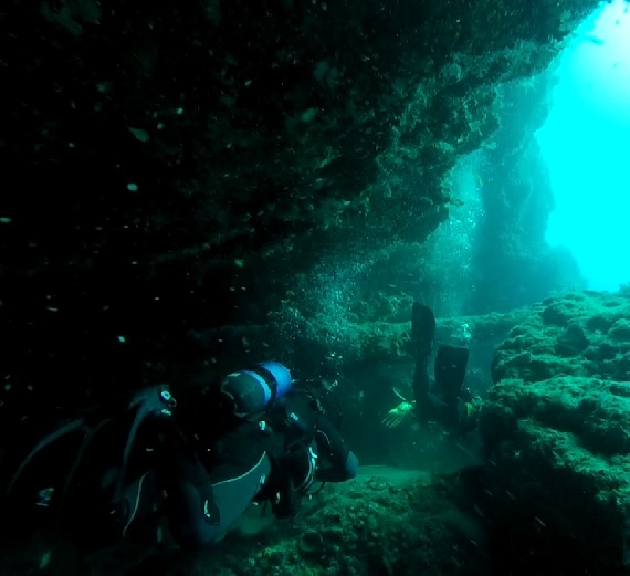A lo largo de la pared encontramos numerosas cuevas que albergan diversas especies de fauna marina donde encuentran refugio y alimento.