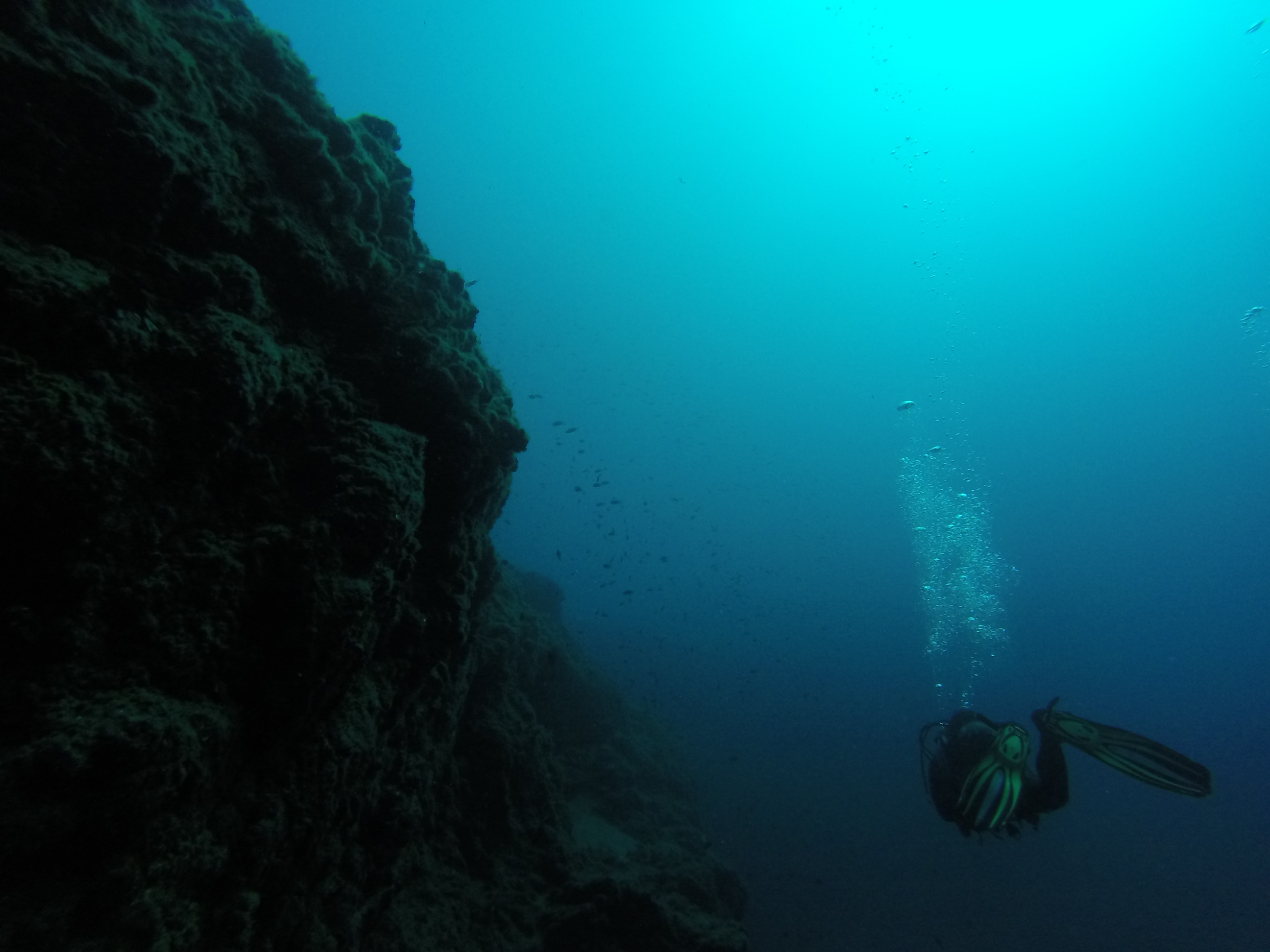 A cinco minutos de Puerto del Carmen en lancha, la zona principal empieza a unos 30 metros de profundidad. Desde aquí mantenemos la profundidad a lo largo de la pared hasta que en un giro hacia la izquierda nos introducimos bajo varios arcos naturales.
