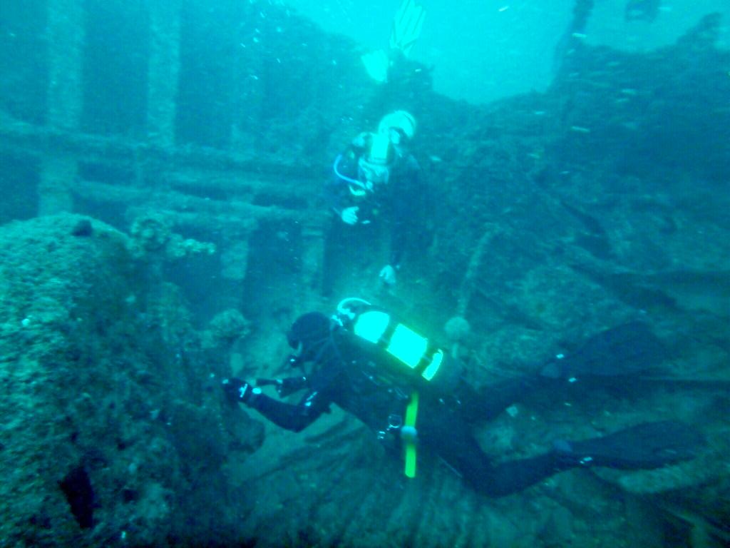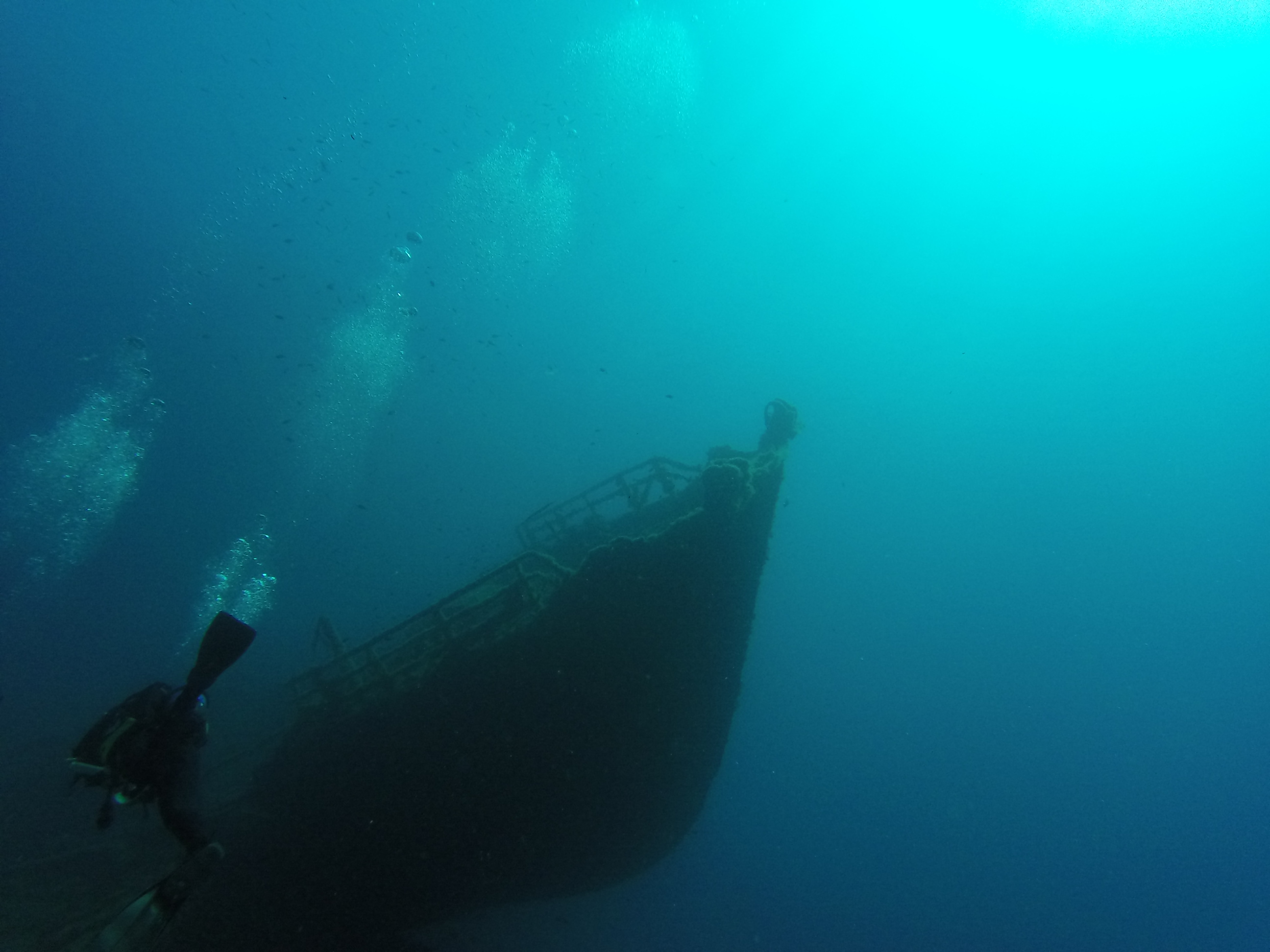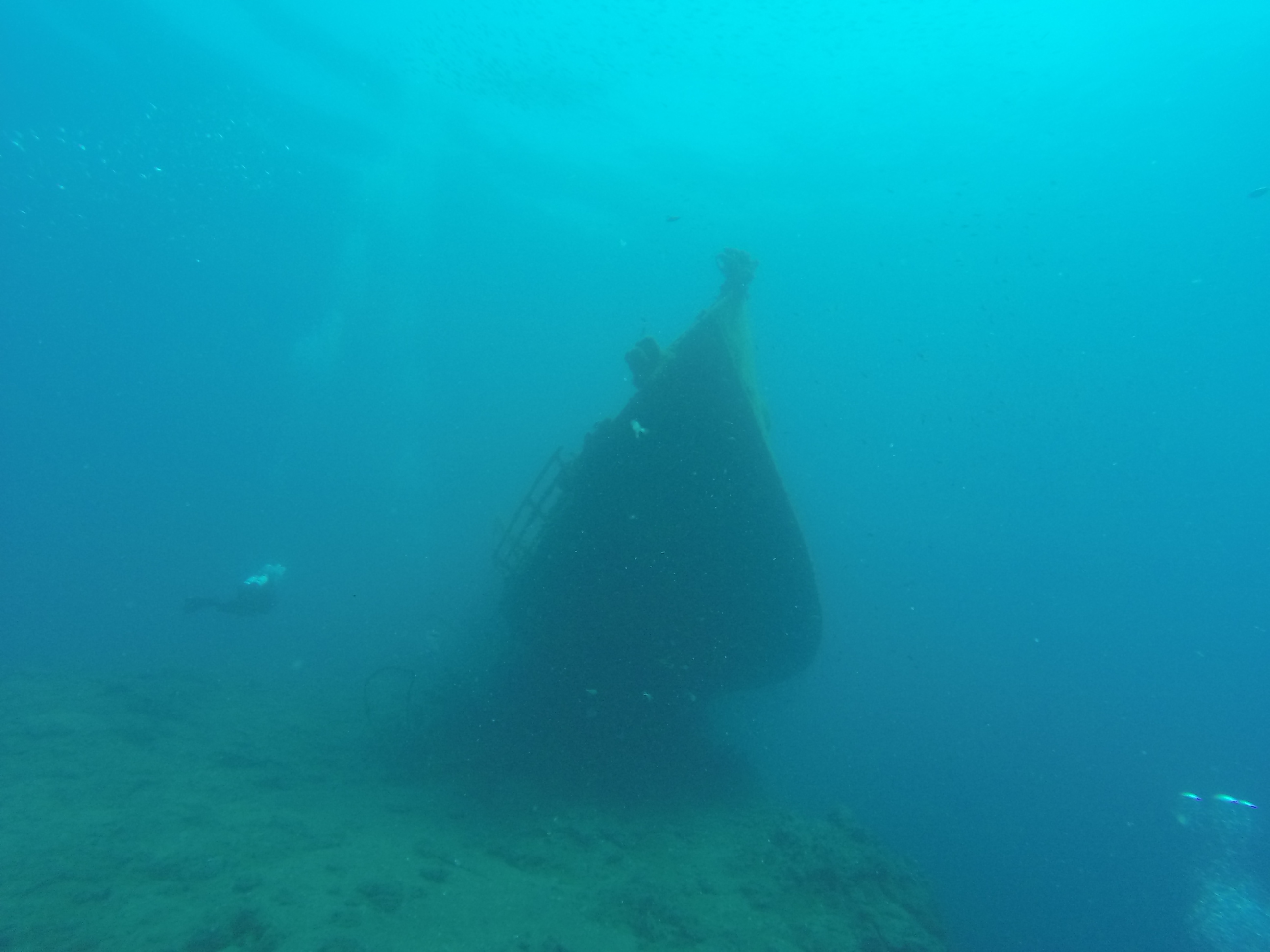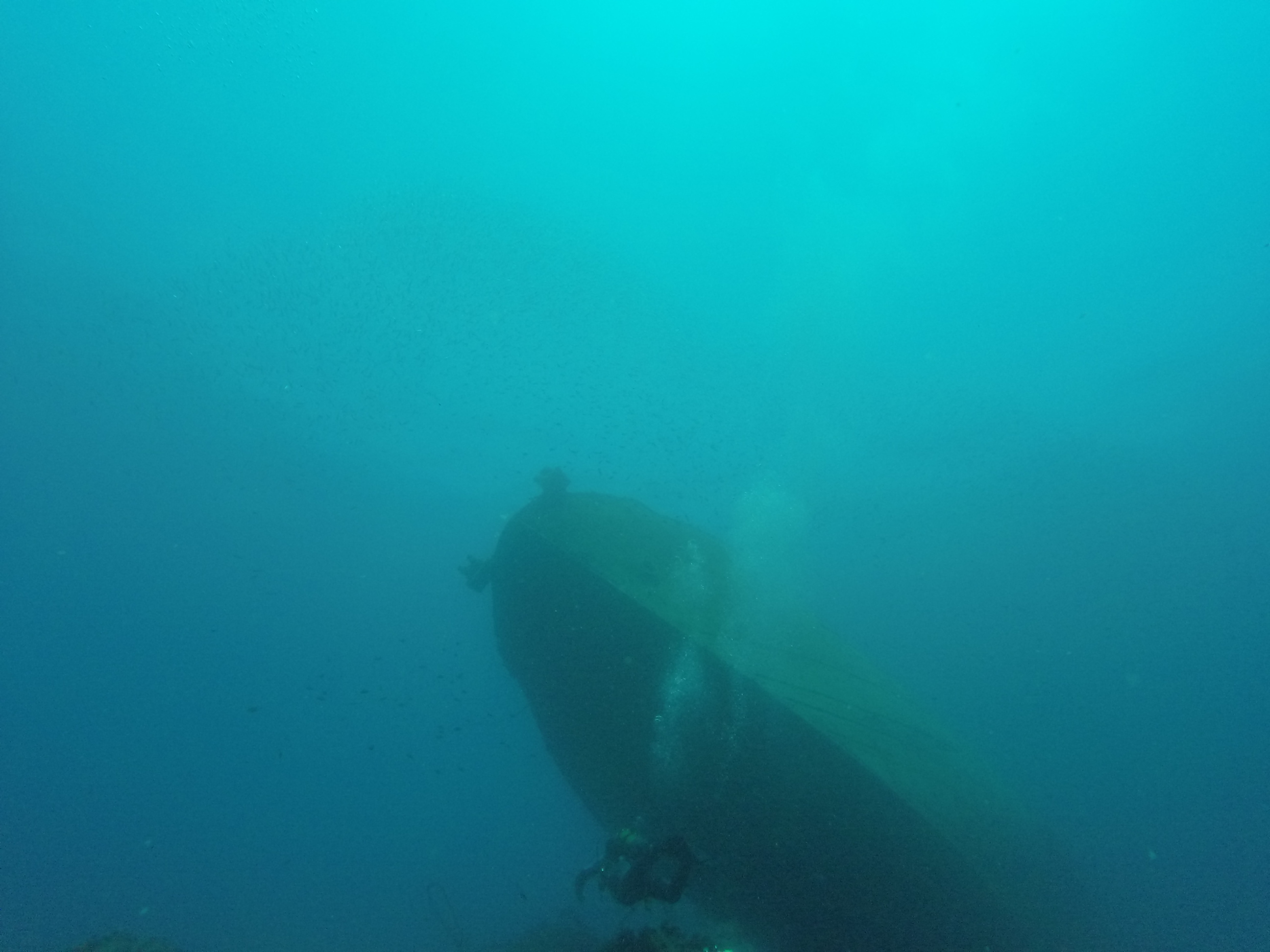 Día impresionante. 2 inmersiones y 3 pecios en cada una. La primera inmersión no empezó como quería pues me puse algo nervioso al principio. Pero después vino el premio, un chucho negro escondido bajo el casco de uno de los pecios anduvo revoloteando delante nuestro como si posara para nosotros.