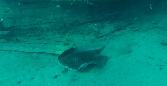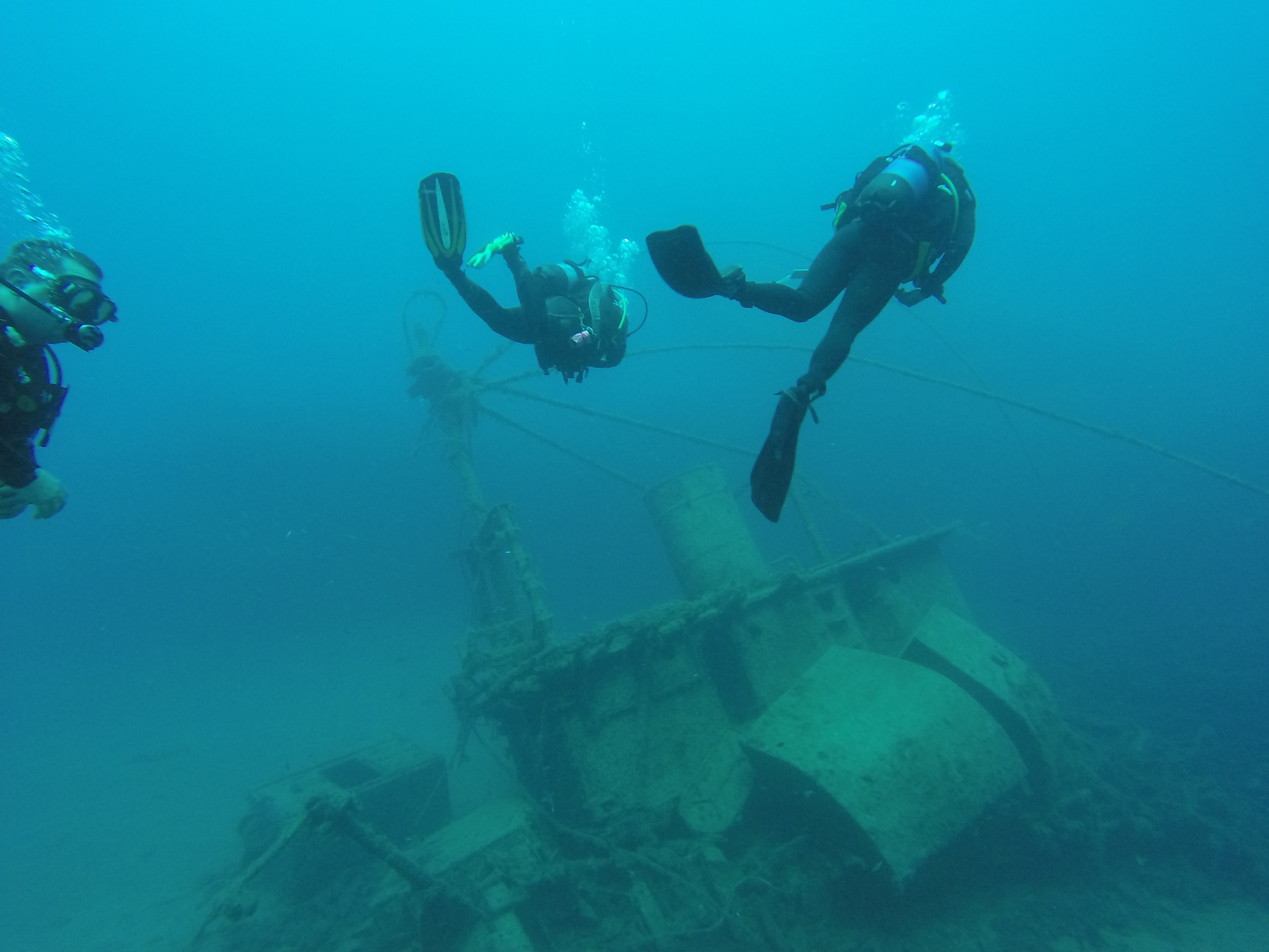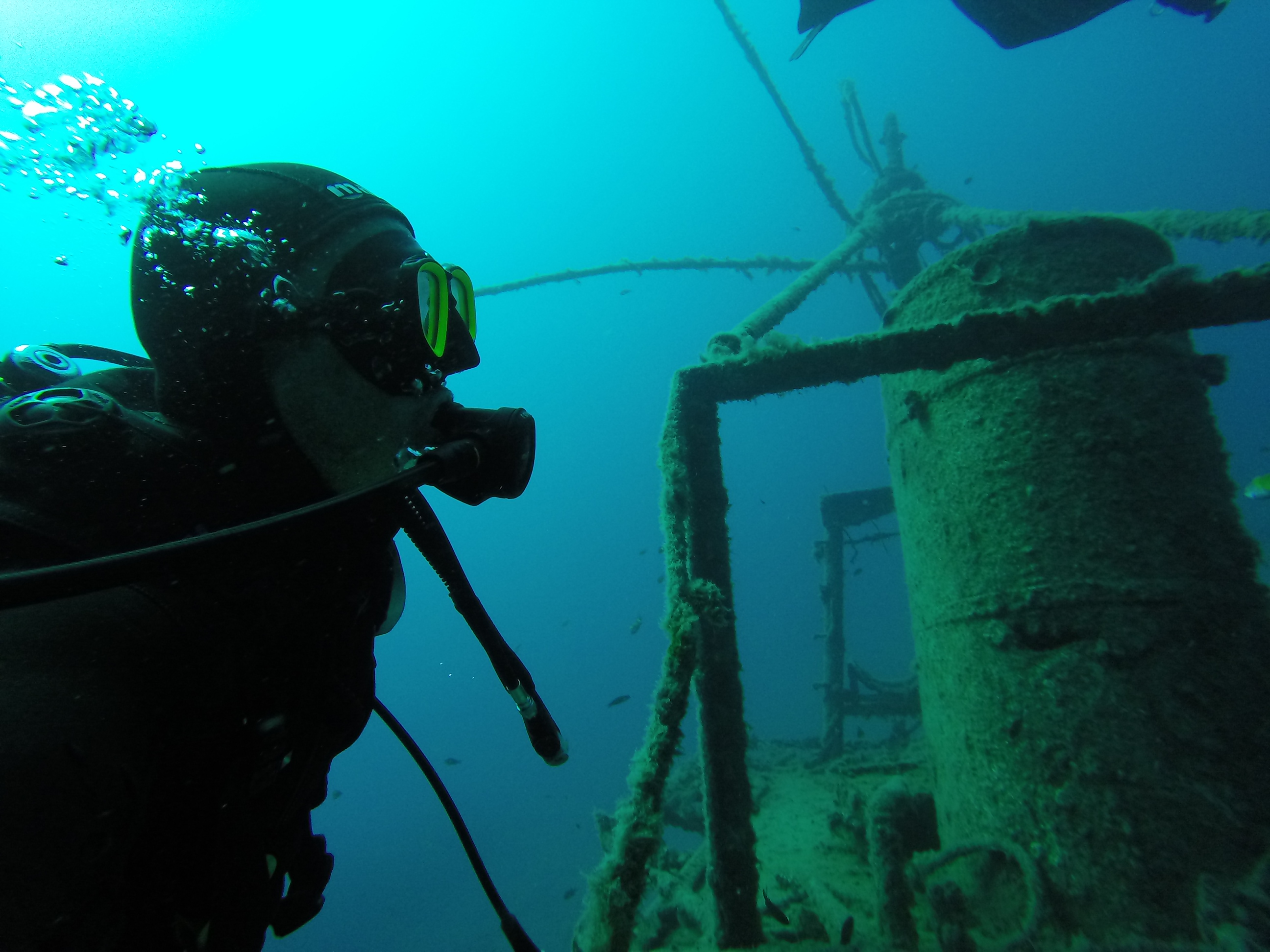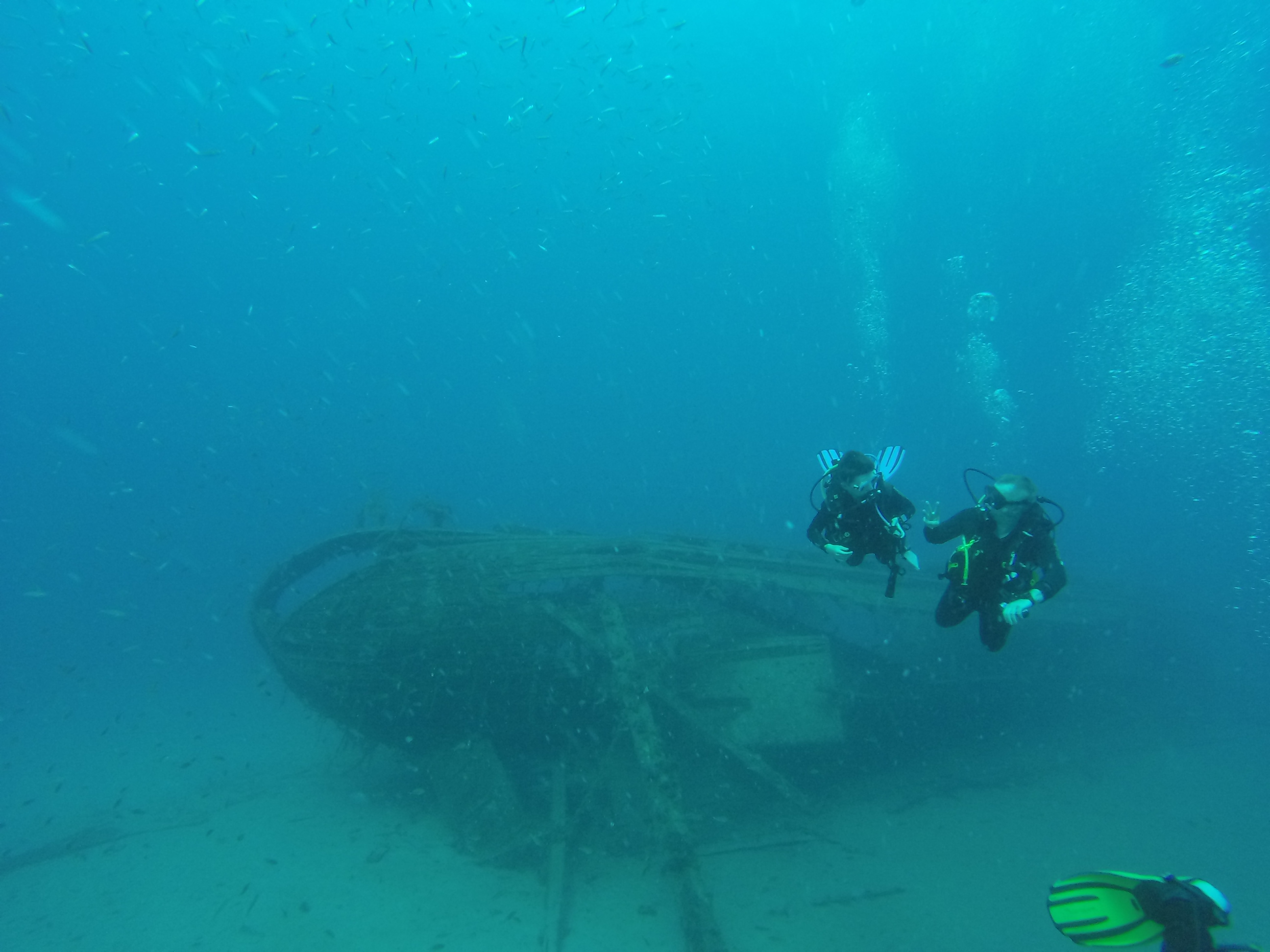 Día impresionante. 2 inmersiones y 3 pecios en cada una. La primera inmersión no empezó como quería pues me puse algo nervioso al principio. Pero después vino el premio, un chucho negro escondido bajo el casco de uno de los pecios anduvo revoloteando delante nuestro como si posara para nosotros.