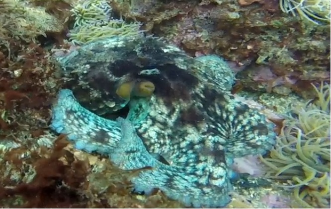 Buen día para un refresh. Ya en el mismo puerto nos cruzamos con varios pulpos(algunos elegantes) y alguna sepia. Y a la vez, en el exterior buceamos sobre numerosos cabrachos y enormes bancos de pececillos. Un compañero del currelo y su pareja se llevaron un buen regalo en su primer bautizo y nosotros disfrutando como niños.