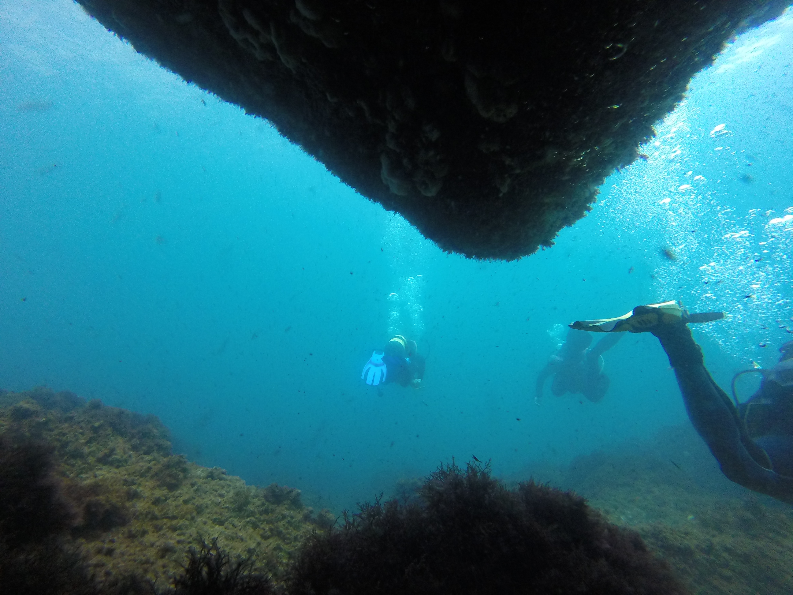 Bajo el casco, pudimos ver un rape enorme y dentro del barco nos dió tiempo a ver la mitad de un congrio enorme que se retiró hacia su agujero al ver a tanto submarinista excitado.