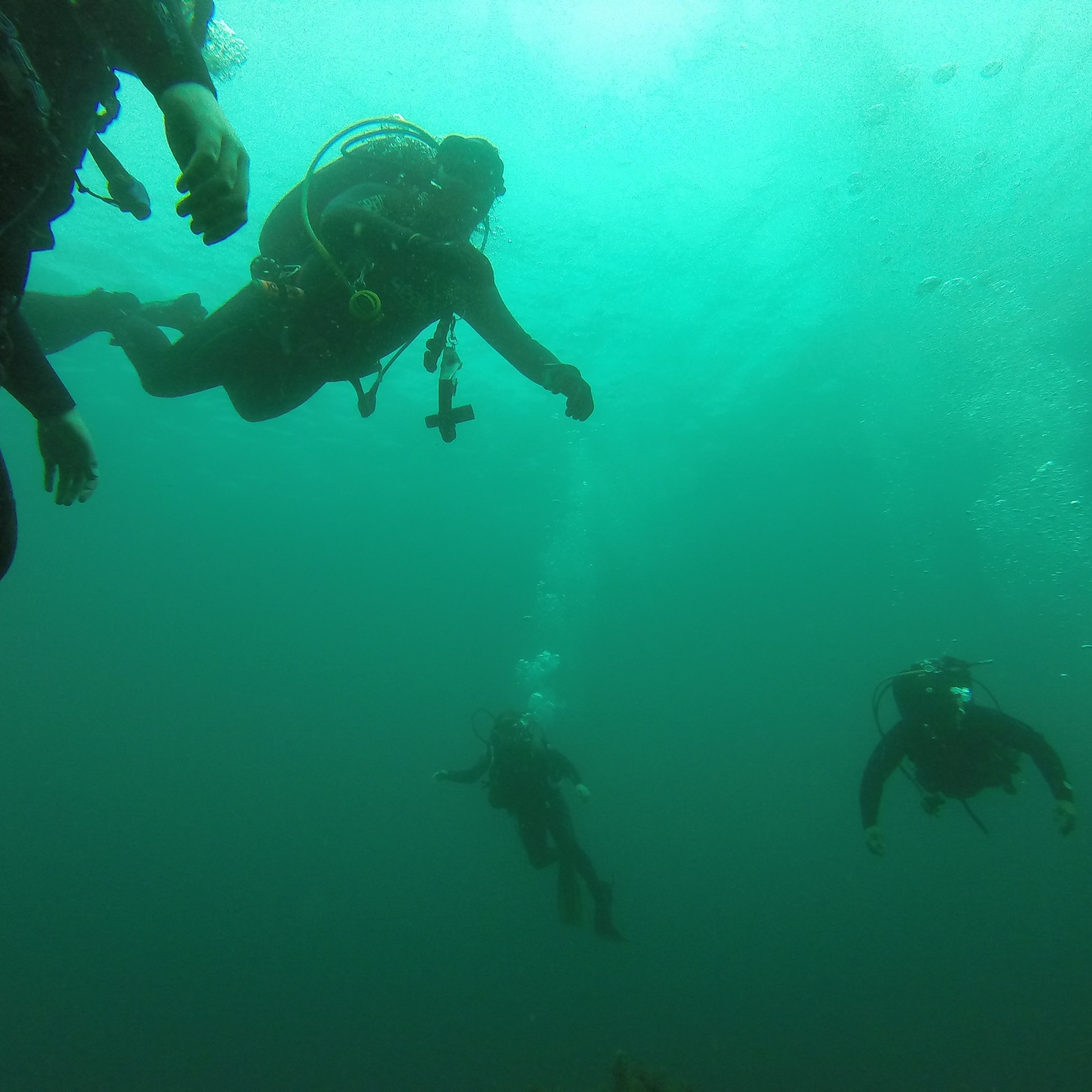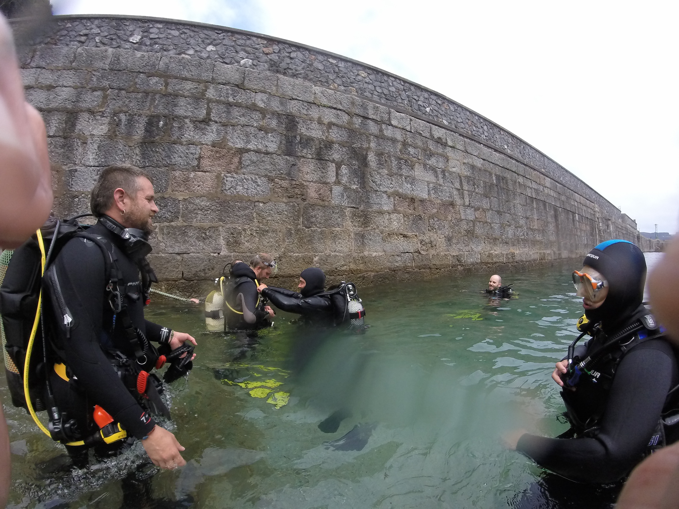 El campo base para realizar bautizos y practicas para los diferentes cursos. Al estar protegida, muchas especies encuentran refugio entre los muros del puerto por lo que contiene mucha vida marina.