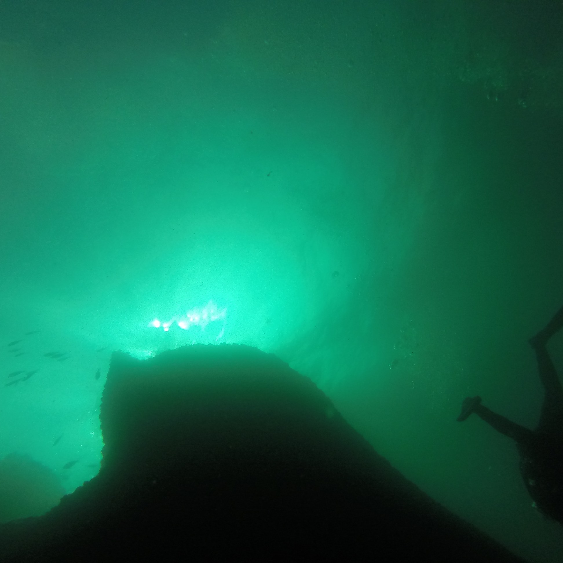 Un peñasco que sobresale tras la isla de Izaro pero que se convierte en una torre que amplía su base hasta los 20 metros. Descendemos hasta la base y luego ascendemos lentamente rodeando la torre donde se apilan numerosos grupos de peces.