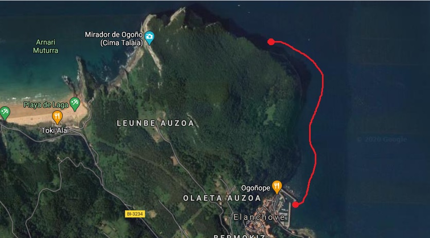 Acceso en barco hasta la cara noreste de los acantilados de Ogoño. Aquí la mar pega de lleno así que es muy recomendable acudir con la mar muy tranquila. una vez anclados descendemos hasta los 16-18 metros y nos aproximamos hasta la base del acantilado donde accederemos hacia una serie de cavernas acuáticas algunas de las cuales se enlazan entre sí. Aunque hay bastante luminosidad es recomendable llevar linterna pues hay tramos que están totalmente a oscuras.